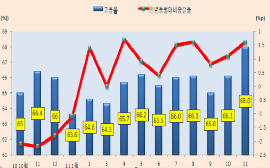 14일 호남지방통계청에 따르면 11월 제주지역 고용률은 68%로 전년 동월 대비 1.6%p 상승했다.