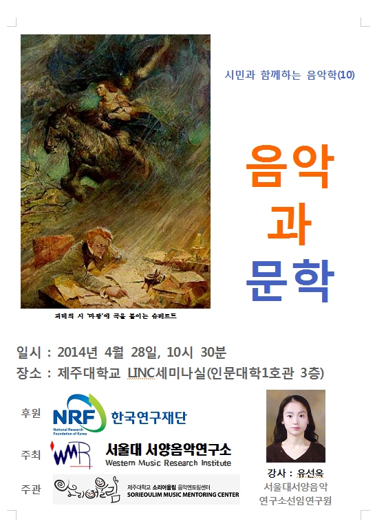강연회는 28일 오전 10시 30분 제주대 LINC세미나실(인문대학 1호관 3층)에서 음악과 문학 등 다양한 인문학이 결합된 융복합 강연 컨셉으로 열린다.