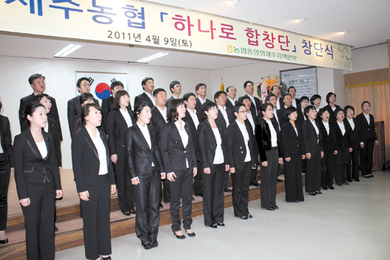 제주농협 관계자는 "농협중앙회와 지역 농.축협 직원 들 사이에 불편한 관계가 없지 않다"며 "합창단 활동이 농협인 화합에 큰 도움이 되고 있다"고 전했다.