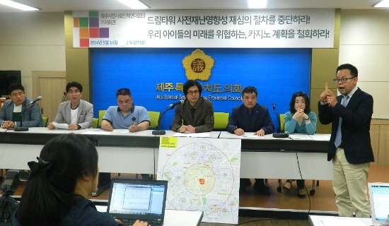 시민사회단체연대회의는 "사업자가 계획하고 있는 카지노 사업허가는 전적으로 제주도지사의 승인 사항이다"며 "우리 아이들의 미래를 생각한다면 제주도지사가 카지노 공모를 하지 않으면 되고 허가를 내주지 않으면 된다"고 말했다.