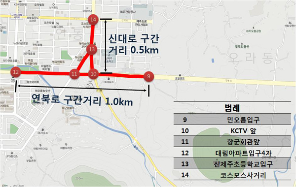 개선대상 주요 혼잡교차로는 그동안 상습교통정체 구간인 ▲제주시 신대로(KCTV 앞 ∼ 구.코스모스 사거리 0.5km) ▲연북로(민오름 입구∼대림아파트 입구, 1.0km) ▲노형로(한라대 입구∼무수천사거리, 3.4km) ▲일주서로(오일시장 앞, 0.7km) ▲서귀포시 중산간 동로(GS칼텍스 앞 ∼ 토평사거, 3.3km) ▲중앙로(한진주유소 앞 ∼ 중앙로타리, 1.3km)로서 도심지 교통혼잡 구간 총연장 10.2km이다.