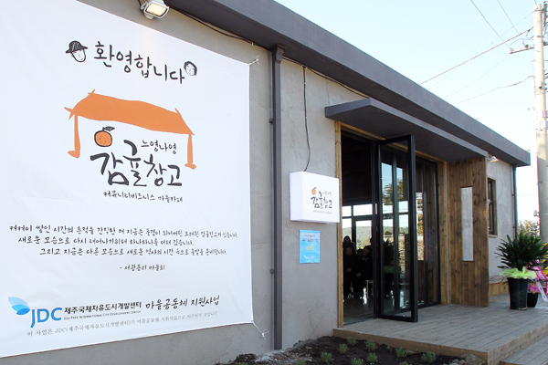JDC가 사업비 1억5천만 원을 지원한 ‘느영나영 감귤창고 카페’는 마을 창고를 활용한 문화 카페다. JDC 프로젝트 지역 마을 공모를 통해 선정됐다.
