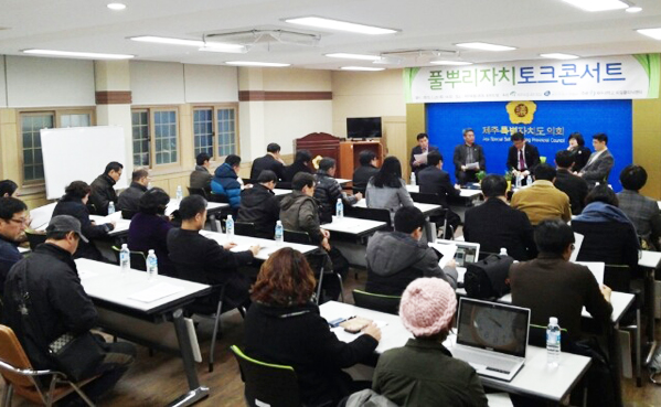 29일 제주도의회 도민의 방에서 열린 '풀뿌리자치 토크콘서트'에서 제주도의 현행 주민자치위원회가 구성.권한.역량 면에서 풀뿌리 자치를 구현하기에는 문제가 많다는 지적이 나왔다.