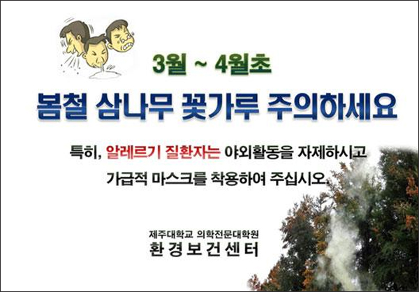 제주대 의학전문대학원 환경보건센터(센터장 홍성철)가 봄철 삼나무 꽃가루 주의보를 발효했다.