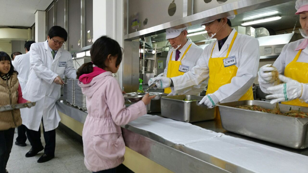 이곳에서 학교 급식 배식을 진행한 이 교육감은 무상급식 중단이 지역사회 및 학교현장, 아이들의 생활 등에 초래하는 피해를 진단했다.
