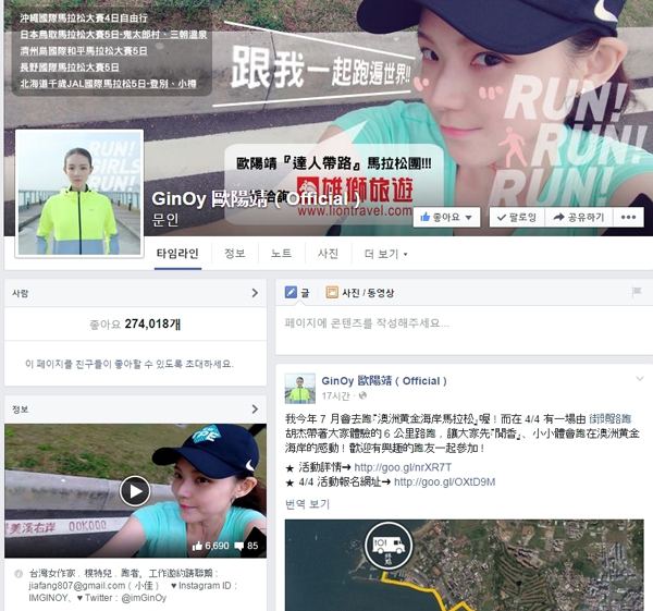 현재 대만의 유력 여행사 중 하나인 웅사여행사(雄獅旅遊)가 매년 출시하는 마라톤+해외여행 상품의 주력모델이다.