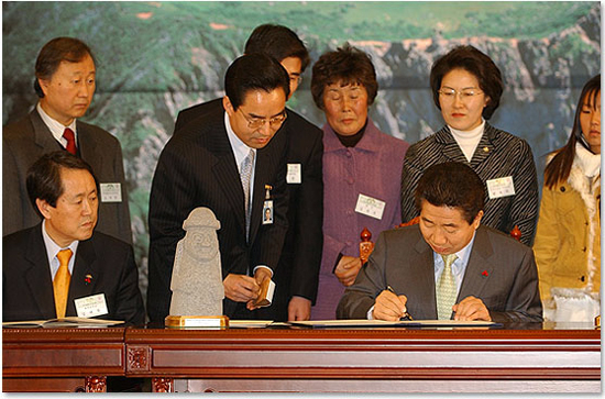 당시 고(故) 노무현 대통령이 지정 선언문에 서명했다.