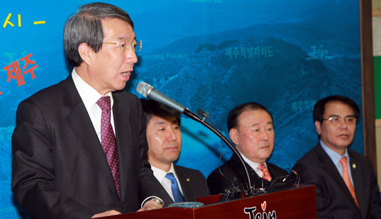 이날 회견장에는 부만근 범도민추진위원장, 양원찬 범국민추진위 사무총장, 양영근 제주관광공사 사장, 김부일 제주도 환경.경제부지사가 배석했다.