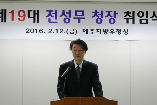 전 청장은 이날 열린 제19대 제주우정청장 취임식에서 "제주지역 특성에 맞는 사업을 발굴하여 농·어촌지역 소득증대에 기여하고 현장 중심의 고객서비스를 제공하여 언제나 찾고 싶은 열린 우체국을 만들겠다"며 이같이 말했다.