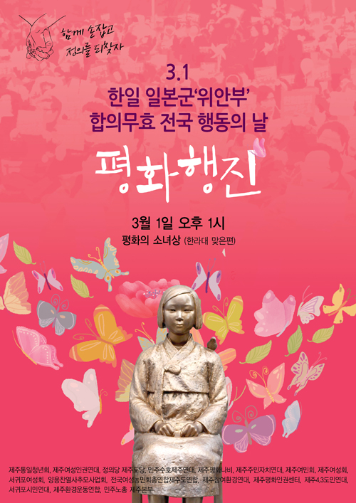 일본군 위안부 문제에 대한 한·일 양국 합의에 대한 반발이 높은 가운데 위안부 합의 무효와 올바른 해결을 촉구하는 평화행진이 제주에서 펼쳐진다.