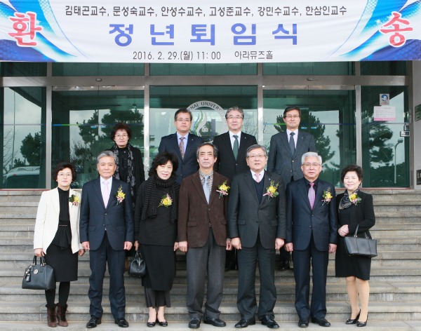 제주대 사범대학 국어교육과 김태곤ㆍ문성숙ㆍ안성수, 윤리교육과 고성준, 생명자원과학대학 생명공학부 강민수, 법학전문대학원 법학과 한삼인 교수가 29일 정년퇴임했다.