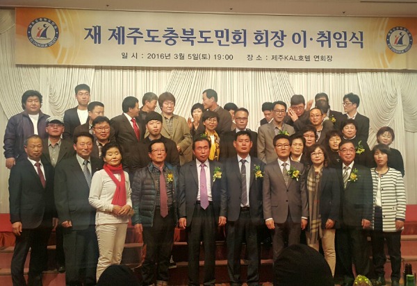 이·취임식에는 김승만 제주연합도민회장, 김신성 전북도민회장, 한림향우회,제주도충북도민회 회원 등 100여명이 참석했다.