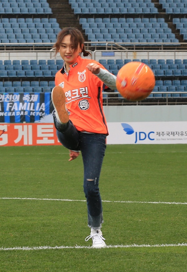 류혜영은 많은 비가 오는 가운데 시축한 후 팬들과 함께 경기를 관전하며 제주의 승리를 기원했다.