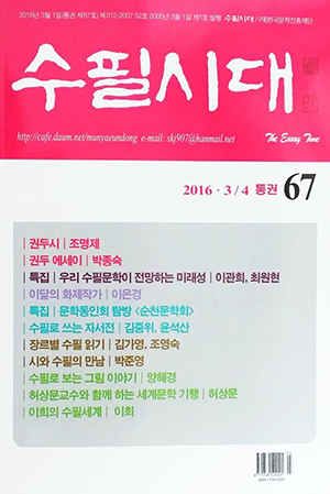 ‘수필시대’ 3/4월호에 ‘제주에는 눈이 내리지 않는다’는 작품으로 신인작가로 당선됐다.