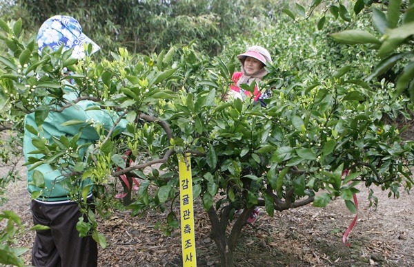 관측조사는 지난 7일부터 18일간 연인원 336명을 투입해 458곳 감귤원에서 실시됐다.