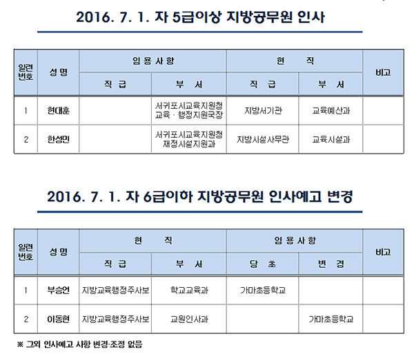 서귀포시교육지원청은 7월 1일자 인사를 27일 확정했다.