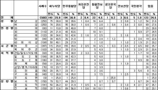 부동층은 화북동(16.7%)과 조천읍(16.1%)이 가장 많았다.