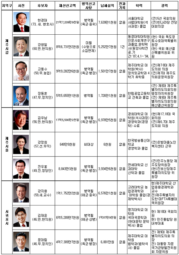 제주도의회 의원 보궐선거 3개 지역구에도 9명이 등록을 마쳤다.