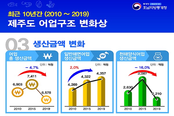 반면 어업생산량은 10년 전에 비해 증가한 것으로 조사됐다.