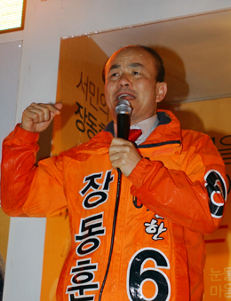 장 후보는 이날 오후 7시 제주시 노형로터리에서 비가 내리는 가운데 총선 출정식을 갖고 서민을 위한 서민에 의한 젊은 정치를 펴며 잃어버린 99%의 서민 정책을 되찾아오겠다고 지지를 호소했다.