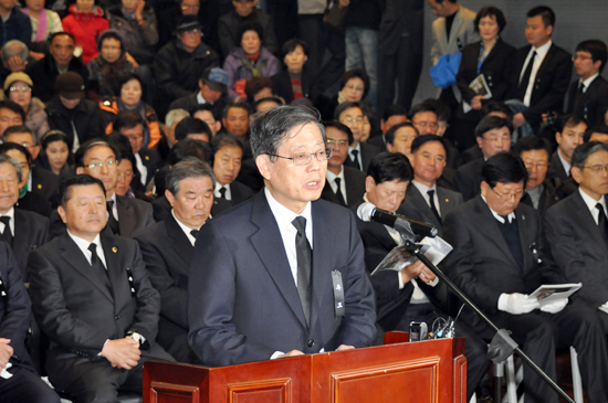 김황식 국무총리는 "제주 4.3 사건이 더 이상 소모적인 이념 대립의 희생대에 올라서는 안된다"고 밝혔다.
