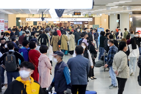 연휴를 가리지 않고 주말 제주행 관광객이 쏟아지고 있다. 사회적 거리두기가 1단계로 완화된 영향으로 풀이된다. 1단계 완화 이후 첫 주말 제주를 찾은 관광객이 한글날 연휴 때보다 더 많았다.