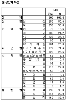 중도층 지지도는 강창일 36.6%, 현경대 26.9%, 장동훈 18.6%로 조사됐다. 이번 조사에서 중도성향 유권자의 부동층은 15.9%로 보수층(7.2%)과 진보층(6.3%)보다 많았다.