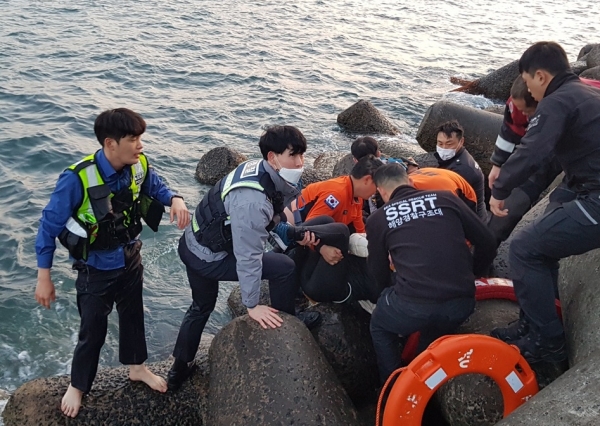 A씨는 육상에서 이송 대기 중인 119구급차량에 옮겨져 병원 치료를 받았다.
