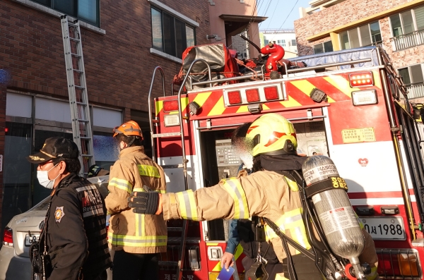 그러나 거주자 A(43)씨는 이 사고로 대피 도중 오른쪽 손과 정강이 부분에 1도 화상을 입고 병원으로 이송됐다.