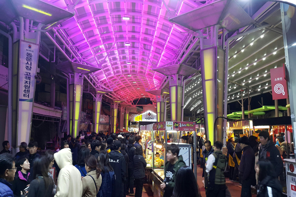 제주시내 관광명소 중 하나인 동문재래시장 야시장이 재개장했다.