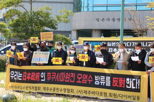 ![제주도수중레저협회, 제주수중·핀수영협회, 제주바다포럼 회원 등 수중레저인들이 19일 오전 주제주일본국총영사관 앞에서 기자회견을 열고 일본 후쿠시마 원전 오염수 해양 방류 결정 철회를 촉구하고 있다. [뉴시스]](/data/photos/202104/47967_65534_3858.jpg)