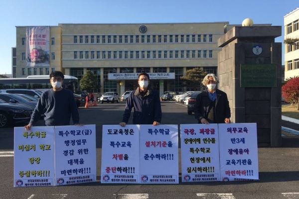 그러면서 “제주교육청은 ‘특수교육법 및 특수학교시설.설비기준령’에 따라 교실 및 특별실 등을 확보, 증설하여 열악한 교육환경을 개선해 장애 학생 교육권을 보장하라”고 요구했다.