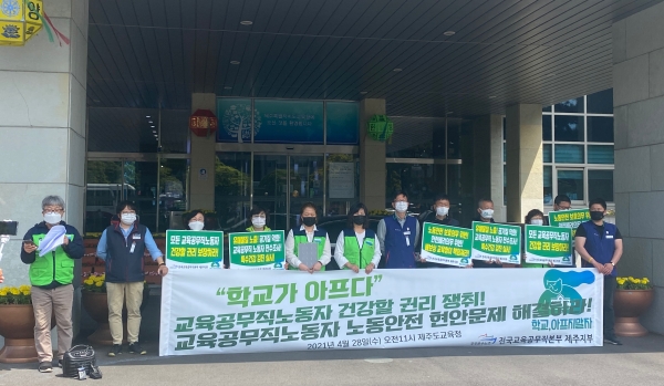 ![전국교육공무직본부 제주지부가 28일 오전 11시 제주도교육청 앞에서 기자회견을 열고 교육공무직노동자 노동안전 현안문제 해결을 촉구하고 있다. [사진=박지희 기자]](/data/photos/202104/48076_65680_4137.jpg)
