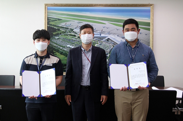 ![제주공항 보안검색요원들이 지난 18일 제주국제공항에서 심정지로 쓰러진 승객을 심폐소생술로 살려내 표창장을 받았다. 왼쪽부터 제주국제공항 보안검색요원 김현규씨, 손종하 제주지역본부장, 보안검색요원 박요한씨 모습. [사진=한국공항공사 제주지부]](/data/photos/202104/48089_65693_29.jpg)