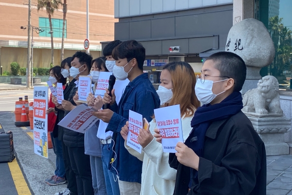 이어 "우리 대학생들은 4월16일을 기점으로 일본이 방사능 오염수 방류 결정을 철회할 때까지 서울 일본대사관 앞에서 무기한 농성을 시작했다"며 "오염수 배출로 가장 큰 타격을 입는 제주도에서 방사능 오염수에 신음하는 제주도민들과 적극적으로 투쟁해 나갈 예정"이라고 밝혔다.