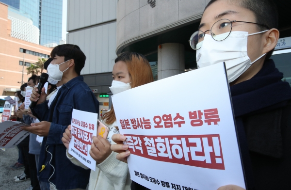 ![본 방사능 오염수 방류 저지 대학생 농성단이 30일 오후 제주시 일본국총영사관 앞에서 기자회견을 열어 일본 정부의 후쿠시마 방사능 오염수 방류 결정을 규탄하고 있다. [뉴시스]](/data/photos/202104/48108_65735_2854.jpg)