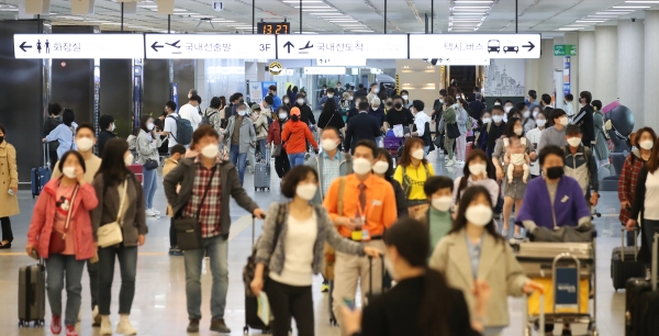 ![국내 코로나19 신규 확진자 수가 이틀 연속 700명대를 기록한 지난 22일 오후 제주를 방문한 관광객들의 발길로 제주국제공항이 붐비고 있다. 중앙방역대책본부는 이날 0시 기준 코로나19 신규 확진자가 전날보다 4명 늘어난 735명이라고 발표했다. 이는 지난 1월7일(869명) 이후 105일 만에 최다다. [뉴시스]](/data/photos/202105/48115_65742_1634.jpg)