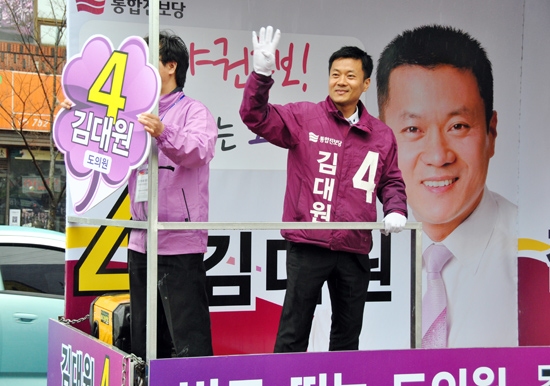 김대원 도의원 후보(통합진보당·일도2동 갑)가 상식과 인간에 대한 존중을 선택해 달라며 투표를 독려했다.