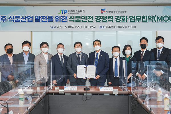 제주테크노파크와 한국식품안전관리인증원은 지난 18일 제주벤처마루에서 ‘제주 식품산업 발전을 위한 식품안전 경쟁력 강화’ 업무협약(MOU)을 체결했다고 21일 밝혔다.