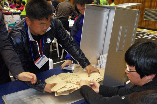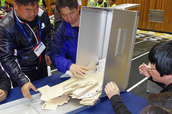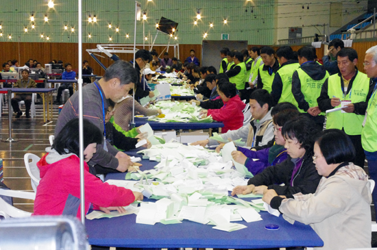 제주도선거관리위원회는 11일 오후 6시 투표를 종료하고 투표함을 제주시 한라체육관(제주시 갑.을선거구)과 서귀포시 올림픽기념국민생활관(서귀포시 선거구)으로 이송해 개표를 시작했다.