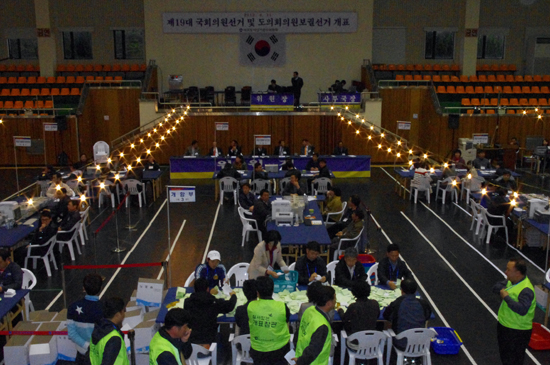 19대 국회의원 선거와 도의회의원 보궐선거 개표가 시작됐다.