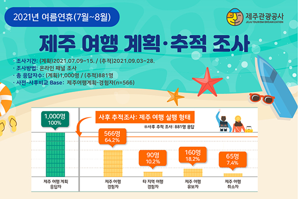제주관광공사는 ‘여름연휴(2021년 7~8월) 제주여행 계획·추적 설문조사’(이하 여름시즌 조사) 결과를 3일 발표했다.