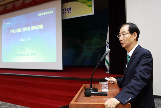 한 회장은 "한미 FTA가 청정지역 제주 농수산물의 가격경쟁력을 제고하고 미국 시장 진출을 확대하는 절호의 기회가 될 것으로 확신한다"며 "이를 위해서는 농식품별 수출조건 및 안전기준 점검, 현지 소비자들의 기호를 고려한 맞춤형 수출이 추진돼야 한다"고 지적했다.