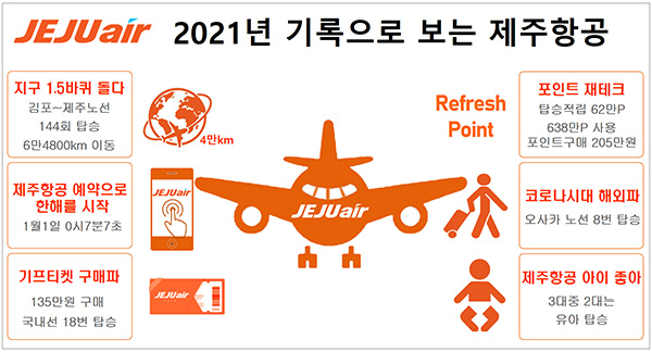 제주항공 관계자는 “코로나19로 힘들었던 시기지만 제주항공을 사랑하고 이용해주신 회원들의 기록을 되돌아보고, 올해 더 좋은 이야기를 만들어 가기 위해 지난해의 기록들을 데이터화 했다”고 말했다. [제이누리=양은희 기자]