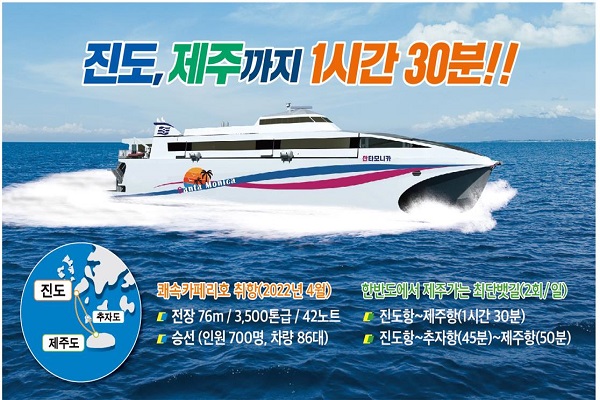 뭍에서 제주를 잇는 가장 빠른 항로인 진도~제주 항로가 오는 4월 본격 취항한다.