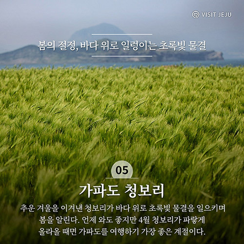 5. 봄의 절정, 바다 위로 일렁이는 초록빛 물결 – 가파도 청보리