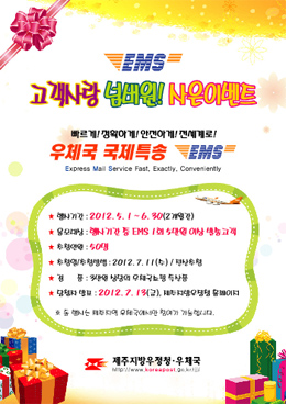제주지방우정청은 가정의 달 5월을 맞아 우체국 국제특송(EMS) 이용고객을 대상으로 ‘EMS 고객사랑 넘버원!’ 사은 이벤트를 마련한다.