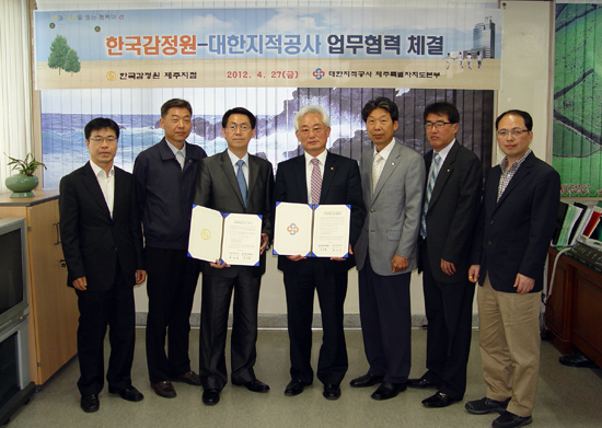 대한지적공사 제주도본부는 27일 본부장실에서 한국감정원 제주지점과 상호협력 구축을 위한 협약을 체결했다.