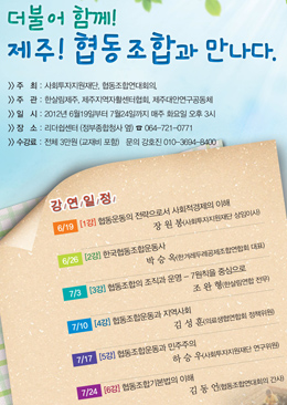 2012년 세계협동조합의 해를 맞아 마련된 이번 강좌는 사회투자지원재단, 협동조합연대회의가 주최하고 제주지역자활센터협회, 한살림제주, 제주대안연구공동체가 주관한다.