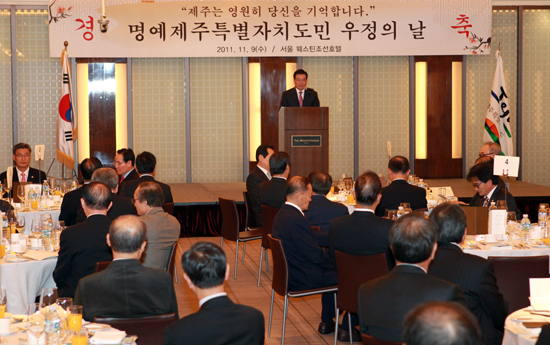 제주도는 9일 오후 서울 웨스틴 조선호텔에서 우근민 지사, 문대림 도의회 의장 등이 참석한 가운데 수도권 지역 명예도민 80여명을 초청, '명예제주특별자치도민 우정의 날' 행사를 갖고 갖고 도정 현안과 제주 발전에 대한 조언을 구했다.